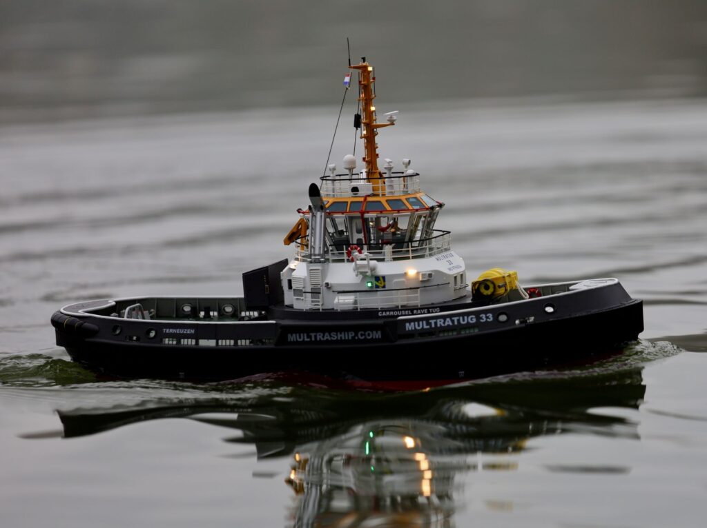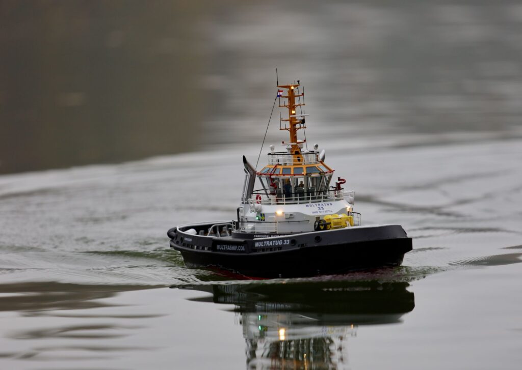 Das Modell hat aktive Quer- und Tiefenruder, ein Bugstrahlruder, Wassersensor, Spannungsüberwachung, Beleuchtung und ein Soundmodul.