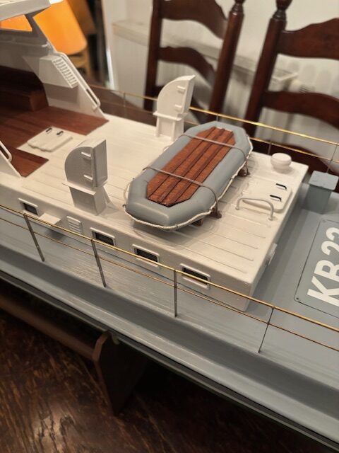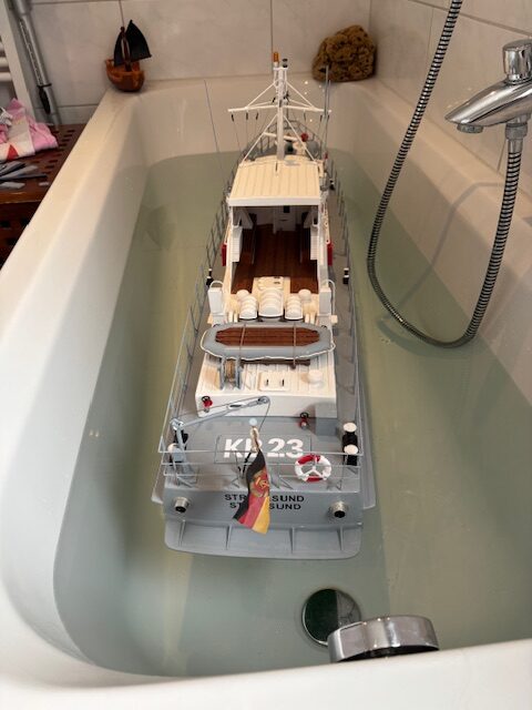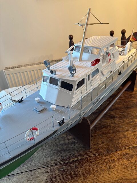Das originale Kontrollboot KB23 hatte eine Länge von ca. 23m, eine Breite von etwa 4,70m und einen Tiefgang von rund 1,37m. Angetrieben von 800-100PS und ausgelegt für eine Besatzung von 4-5 Mann.